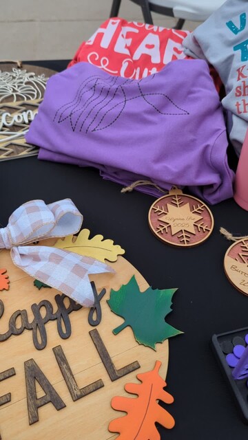The Longhorn Spirit Shoppe, a student group that uses technology, engineering and graphic design skills to create items for the school or to sell in their shop, went on the road on Saturday, October 11th, for a Burwell Chamber of Commerce event, "Touchdowns, Tailgates & Thank-Yous." The fall Chamber event happened on the northwest corner of the square in Burwell and had games, great breakfast food and drinks, kids rides and the Longhorn Spirit Shoppe.