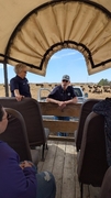 One of the highlights of the trip was riding in a covered wagon through the herd. The group observed the entire bison population—two herd bulls, cows, calves, yearlings, and two-year-olds—living together as a cohesive unit. With calving season underway, participants were fortunate to see newborn calves, adding an extra layer of excitement to the experience.